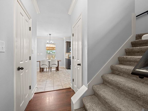 This one’s a gem! Located in the gated community of Notting Hill, this 3-bedroom, 2.5-bath home has the perfect mix of style, comfort, and convenience. Step inside to a cozy living room with laminate floors, built-in bookcases, and a gas log fireplace that instantly feels like home. Surround sound makes this space ideal for movie nights or relaxing evenings in. The kitchen features granite countertops, a decorative brick backsplash, stainless steel appliances, and ceramic tile floors. The breakfast nook overlooks the back patio and fenced backyard. The primary suite is downstairs for easy access and total privacy. It has laminate floors, tray ceilings, crown molding, and a ceiling fan for that extra comfort touch. The en suite bathroom has dual vanities, a garden soaker tub, a separate shower, and a walk-in closet that’s surprisingly spacious. Upstairs, you’ll find two more bedrooms, a full bathroom, and a loft area that’s perfect for a home office, game room, or chill space. Outside, this home sits on a corner lot for added privacy and a fully fenced yard that’s great for pets or backyard hangouts. There’s even extra space on the side for storage. Bonus: A new upstairs AC unit means one less thing to worry about and a newer roof (less than 1 year old!)