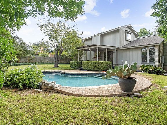 Discover the allure of this truly one-of-a-kind home, perfectly situated in sought-after Anderson Mill. From the moment you arrive, you're greeted by the unique architecture with captivating rooflines that set the stage for what lies within. Step inside and be swept away by the floor-to-ceiling windows. The large stone fireplace serves as a stunning focal point, complementing the soaring ceilings and open vaulted entry. An atrium area off the dining room separates the inviting living room from the cozy den. In the kitchen, you'll find an expansive sit-down island that alongside an additional living area/den, complete with its own magnificent floor-to-ceiling fireplace and soaring vaulted ceilings adorned with more breathtaking windows. Retreat to the tranquil primary suite, thoughtfully positioned for ultimate privacy. This serene space features a charming sitting/exercise nook that opens up to its very own private atrium. Upstairs features an open staircase that overlooks the living room below. There is a versatile loft area along with three generous bedrooms, sharing a Jack and Jill bath enhanced by two skylights and a laundry chute for access to laundry room. The enchanting backyard serves as your personal oasis, complete with a covered patio that overlooks a private yard and an inviting inground pool—an ideal setting for entertaining. Don't let this extraordinary opportunity slip away! Recent upgrades include a two-year-old roof, 4 year old AC unit, 2025 water heater, dishwasher & backsplash. Additionally, the Anderson Mill MUD offers access to two community pools, including one that remains open year-round with a diving board, planned activities, hiking and biking trails, & sports courts—all for a small fee. Enjoy the unbeatable location that provides easy access to toll roads, low tax rate, & access to the highly acclaimed Round Rock ISD schools located in the community. You'll find an abundance of shopping options, HEB, and hospitals just moments away.