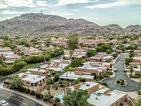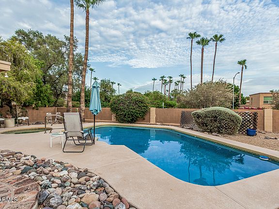 Stunning home with POOL and MOUNTAIN VIEWS in Pointe Tapatio! Nestled in a quiet cul-de-sac, offering 3 bedrooms, 3 bathrooms, and a 2-car garage with attached storage! Inside, you'll find generous living areas with tile flooring, plantation shutters, a beehive fireplace, and an earthy palette. The impeccable kitchen boasts white cabinetry, decorative tile backsplash, tile counters, and built-in appliances. The airy main bedroom has a private exit, a closet, and a bathroom with double sinks. Enjoy your morning brew on the balcony. The backyard features a covered patio, a built-in outdoor kitchen, a spa, and a sparkling pool perfect for entertaining guests and relaxing year-round! The community's amenities include a pool, walking path, clubhouse, and a spa! Hurry up! This gem won't last