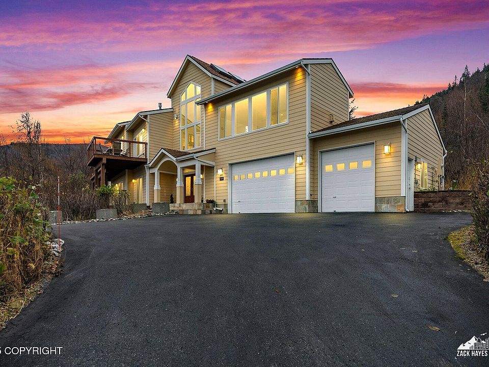 Welcome to Your Alaskan Paradise in Stuckagain Heights:Nestled against the majestic Chugach Mountains, this stunning residence offers a rare blend of luxury and wilderness. Located in the serene and sought-after community of Stuckagain Heights, this home provides an unrivaled retreat from the pace of everyday life -- where breathtaking beauty greets you at every turn.Step inside and be captivated by the sweeping views that stretch across the city of Anchorage, the vast Cook Inlet, and the distant peaks of the Alaska Range. Nearly every room showcases these panoramic vistas, a constant reminder of the spectacular setting that surrounds you. Even your drive home is an experience winding through municipal parklands alive with Alaska's incredible wildlife. Spot moose, bald eagles, and other native creatures as part of your daily routine. It's truly a nature lover's dream. Inside, the home exudes sophistication and comfort. High-end finishes, designer fixtures, and top-tier appliances create a sense of understated luxury that perfectly complements the natural beauty outside. The open-concept layout enhances the home's spacious feel and makes entertaining effortless. Two master suites one on each level offer privacy and comfort for homeowners and guests alike. One suite features a spa-like bath and generous closet space, providing a private sanctuary at the end of the day. Versatility abounds with an additional bonus room that can easily serve as a home office, gym, or cozy library, whatever best fits your lifestyle. And for movie nights or weekend entertainment, a dedicated theater room awaits. Set at the end of a quiet street, this property offers peace and seclusion. Step outside and find trailhead access right from your doorstep your gateway to endless hiking, wildlife viewing, and the crisp mountain air of Alaska's great outdoors. This exceptional home embodies the best of the Alaskan lifestyle luxury, tranquility, and a deep connection with nature. Don't miss your opportunity to make this breathtaking mountain retreat your own.