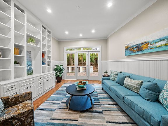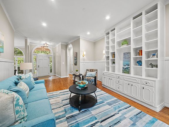 Stunning 3,900-square-foot on a spacious acre lot! The heart of the home is a spacious kitchen featuring white cabinetry, granite countertops, and a massive island—ideal for both cooking and entertaining. The first-floor primary suite offers a comfortable retreat with a walk-in closet and a generously sized ensuite complete with dual vanities, a soaking tub, and a separate shower. Three additional bedrooms on the main level provide ample space for family or guests. The inviting family room showcases a vaulted ceiling, a cozy fireplace, and floor-to-ceiling windows that fill the space with natural light. A separate living area with built-in shelving opens directly into the backyard! Upstairs, you'll find an office, a bonus room perfect for hobbies, and a versatile flex space complemented by a modern bathroom with a walk-in shower. The walk in attic provides ample space for storage! Enjoy every aspect of outdoor living with the treelined backyard, where you'll find a charming playhouse and plenty of room to relax or play. Completing this exceptional property is a spacious three-car garage!
