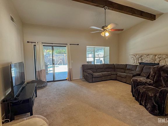 You'll love this home with a new roof!!!! This home offers 4-bedrooms, 1.75-bath home with a 2-car garage. It features a large formal living room, vaulted ceilings, and a lovely kitchen with a nook and built-in cabinetry. The interior has been freshly painted, and the bedrooms offer plenty of space, including a primary suite with a private bathroom and direct access to the backyard. Outside, enjoy a covered patio overlooking a pool and spa with newer pool equipment perfect for entertaining or relaxing.