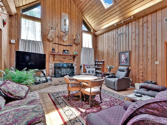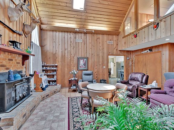Inside, you’ll find vaulted skylight ceilings with upstairs windows overlooking the living room, creating an open and airy feel. The home includes built-in desks in multiple rooms, a secure gun safe, and a large flex space upstairs that can be used as an office, game room, or craft room. A sunroom with abundant natural light provides the perfect spot for plants and indoor gardening.