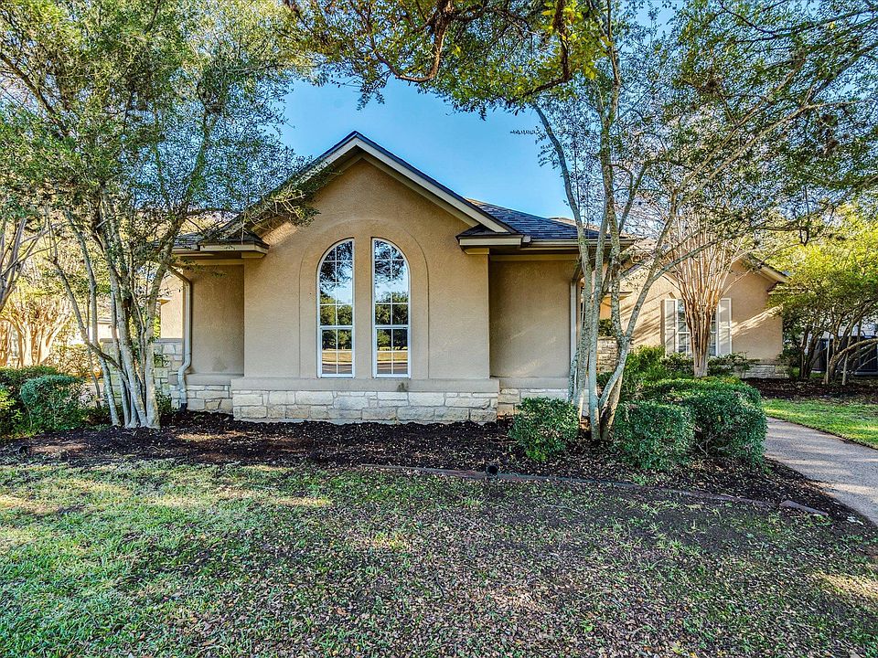 Scenic living along the Onion Creek Golf Course in South Austin. This former Scott Felder model offers 2,910 sq ft of single-story space on an almost quarter-acre lot with uninterrupted views of the golf course’s 10th Tee from the main living areas and primary suite. An open formal living and dining area leads to a bright kitchen with wraparound bar seating, granite counters, built-in stainless appliances, and ample cabinetry. The kitchen overlooks a comfortable family room and breakfast nook framed by stacked windows that fill the home with natural light. View the home virtually here: https://youtu.be/2dQpX5wQNzU The layout includes a dedicated office, an oversized and private primary suite with ensuite bath and walk-in closet, two well-sized secondary bedrooms with a shared dual-vanity bath, a powder room, and a generous laundry room. High ceilings throughout add openness, and the mix of wood, tile, and carpet gives each space its own feel. The home is ready for your modern updates—minor cosmetic improvements could make a big impact. Outdoors, enjoy a covered back porch and a lawn that extends toward the Onion Creek Golf Course’s 10th Tee, surrounded by mature trees and thoughtful landscaping. Additional highlights include a side-entry two-car garage and solar panels. Residents gain access to parks, playgrounds, nature trails, and 24/7 security patrol, with optional Onion Creek Golf Course membership offering a 27-hole course, tennis and pickleball courts, an Olympic-sized pool, fitness center, and clubhouse with dining and event spaces. Convenient to I-35, minutes from HEB and Southpark Meadows, and only 12 miles to Downtown Austin. Your dream of peaceful suburban golf course living starts here – schedule you showing today!
