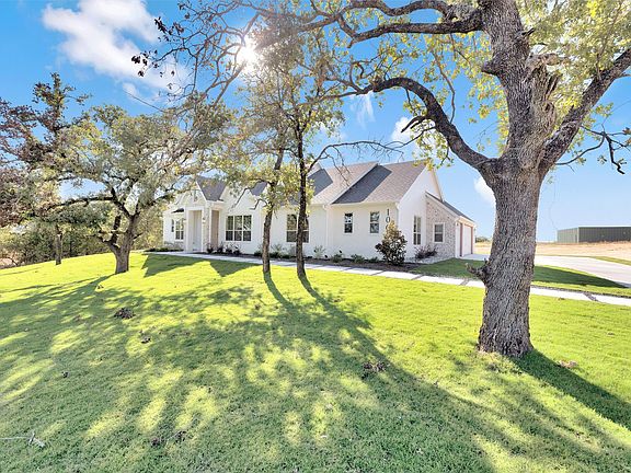 Welcome to this beautiful 4-bedroom, 2.5-bathroom home located in a cul-de-sac in the brand new Arbor Vista Community in Azle, Texas. Set on a full acre with no HOA, this breathtaking home offers 2,484 square feet of thoughtfully designed space, plus a 3-car garage, and an oversized back porch complete with a vaulted ceiling to peacefully wind down after a long day or for the dream space to entertain. From the moment you arrive, the home makes an unforgettable first impression— a magnificent stone exterior, oversized driveway, and a beautifully manicured front yard set back amongst the trees. When you step through the front door, you will notice how open and elevated the home feels with it's bright windows, wood-beam vaulted ceiling, wood-burning fireplace, quartz countertops, custom cabinetry, porcelain tile, luxury carpet, high-end light fixtures, and detailed woodwork. The dedicated office space with a coffered ceiling, overlooking the idyllic front yard full of trees is perfect for remote work or as a personal retreat. The primary bedroom is it's own personal oasis, with a beautiful coffered ceiling, private exterior door to your back porch oasis, a spa-like primary bath including a freestanding tub, an elegant separate shower, and a generous walk-in closet. The utility room is spacious enough for an extra fridge or freezer, includes custom cabinetry, and a sink with quartz countertop for all of your laundry needs. Some additional notable features include a spray-foam insulated garage, engineered foundation, and a full landscaping and irrigation package. You are truly not going to want to miss out on this home.