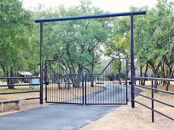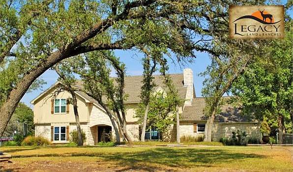 Beautiful Austin Stone Chateau in the Country! Come see this spacious 4 BR/2 BA/2 half BA house with 2 living areas, dining area, kitchen/nook, office, and sunroom at 4,276 sqft. Enter the wrought iron entry gates to enjoy the park-like setting on 7+ wooded acres where deer frolic in the oak motts. Completely fenced acreage with pipe and smooth wire fencing. The property boasts an impressive 30' x 76', 5-bay shop with water/electricity/plumbed for septic. One bay is larger for an RV and another has a dirt floor in the fenced area for livestock. Enjoy sunsets with views of the Del-Mar Ranch from the second-story deck. Entertain summertime guests under the covered patio area and swimming pool. This property has it all and must see to appreciate!