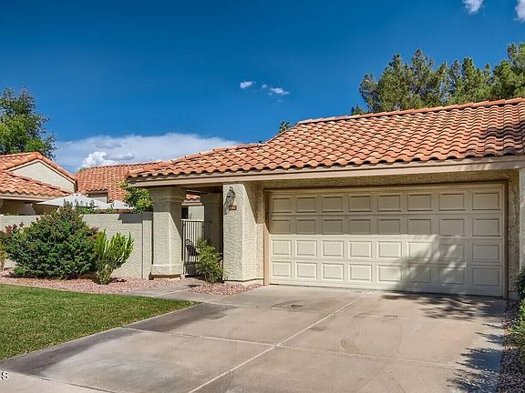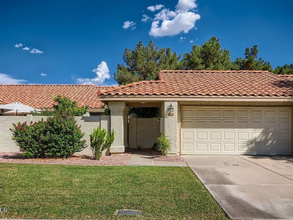 Welcome to this charming single-level Tempe patio home in the sought-after Parkside at the Galleria community. Step through the front gate and into a quaint, private courtyard—the perfect spot to savor your morning coffee or unwind with a glass of wine after a long day. Inside, a warm and inviting living room with vaulted ceilings and a cozy fireplace beckons you to stay awhile. The adjoining dining area is ideal for hosting intimate gatherings, while the thoughtfully designed kitchen, complete with stainless steel appliances, offers a clean, efficient layout that maximizes every square inch.