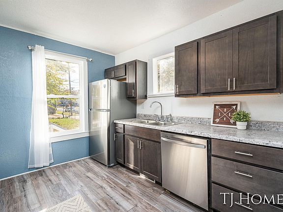 Welcome home to this adorable 3-bedroom, 1-bath gem nestled in the highly desirable Oakview neighborhood of Muskegon! Step inside to discover fresh updates throughout, including brand-new LVP flooring and fresh paint that create a bright, inviting atmosphere. The charming kitchen features stainless steel appliances, ample counter space, and a cozy layout perfect for home-cooked meals. Relax on the delightful front porch, ideal for morning coffee or evening unwinding from the stress of the day. Situated on a spacious corner lot, this home offers extra yard space and curb appeal galore. The Oakview neighborhood shines with pride of ownership, making this the perfect place to put down roots. Whether you're a first-time buyer or looking to downsize, this move-in ready home checks all the boxes -style, comfort, and location!