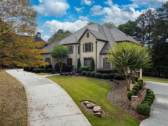 Just reduced! One owner custom built home features handsome library w/coffered ceiling, extra large dining room w/exquisite moldings, huge 2 story foyer opens to great room w/20' ceiling. Opens to large kitchen with granite island, keeping room w/fireplace looks out to spacious porch perfect for relaxing or entertaining, king size master with fireplace, hardwoods and huge walk-in closet. Upstairs has 4 bedrooms & 2 baths. Basement has handsome office, exercise room, bonus room, recreation room, kitchen, bedroom and full bath. Huge private backyard is perfect for entertaining and backs to the lake.