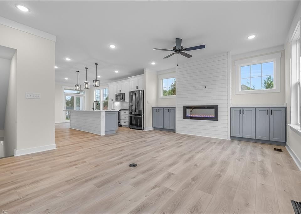 End Unit townhome condo w/rear load 2 car garage. Luxury LVP floor in select living areas, kitchen GE Profile Stainless appliances including refrigerator, center island w/shiplap, living room linear fireplace w/shiplap, 2nd floor living area w/Office/flex room, 1st floorbr/flex room, hall bath 1st flr, mudroom. 3rd floor Primary w/ceramic shower-2 shower heads, dual sinks, 2 closets, 2 br's & full bath, linen closet, laundry. Quartz tops kitch & all baths, covered entry, fenced front yard w/gate to multi trail, 2nd floor Deck off kitchen overlooks central park. Wood shelving all closets. Pet Friendly. Quiet easy lifestyle with the comfort of quality construction & name brand building materials including James Hardie Fire Retardant Fiber Cement Board. Builder 2-10 home warranty, master insurance, trash pick up, private streets, city water/sewer, guest parking, multipurpose trails with lake and fountain. Only 56 homes. Central Greenbrier location.