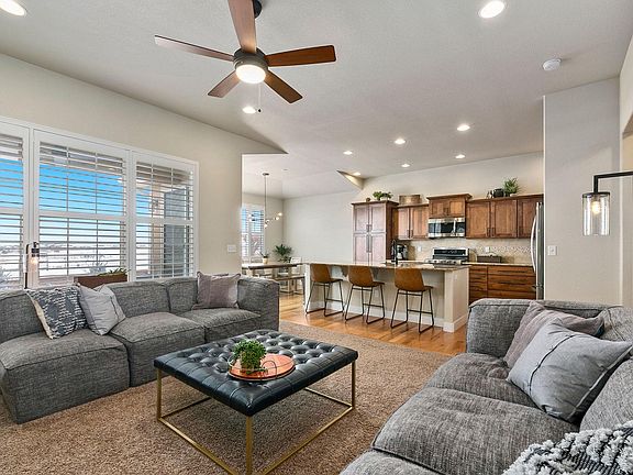 Ranch style home with 3400 finished sq ft and all main level living. Three bedrooms/2.5 baths on the first floor and 1 bedroom and bathroom in the basement. Open concept with hardwood floors, 8 ft doors, granite countertops throughout, gas double oven/range, plantation shutters, euroglass showers, and a large breakfast island. Large master bedroom has 5 piece ensuite with separate vanities and a large saoking tub and walk-in shower. Huge finished basement boasts the 4th bedroom and 3/4 bathroom, office or study area with built in desk, and a spacious rec room. Oversized 3 car garage leaves plenty of room for toys, tools, and storage. You'll love the covered front and back porches. Back yard is fully fenced and professionally landscaped with views of Longs Peak! Short walk to elementary school and parks, minutes to middle and high school. Easy access to Great Western Trail! Landlord is a licensed realtor in the state of CO.