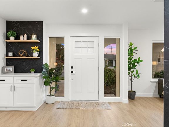 This beautiful one story home has been recently remodeled. The home features 4 bedroom, 2 bath, it sits on a large corner lot of 7,245 sqft and 2,053 sqft of living space. As you enter the home you step into an open floor plan that seamlessly merges a modern design with functionality. The home has new luxury vinyl plank flooring throughout, fresh new interior and exterior paint, double pane windows, central AC, an off-center custom double sided fireplace that offers separation between the two living rooms. The fireplace has a bold beautiful black tile that makes a statement piece in the home. The heart of the home is the beautiful remodeled kitchen, featuring shaker cabinets, stainless steel appliances, a bartop island, ample cabinet storage and countertop space. The home offers plenty of natural light with windows that overlook the neighborhood as well as the backyard. The open layout makes it perfect and easy to entertain. The guest bathroom has been remodeled with clean subway tile, an LED mirror and a new vanity. The primary bedroom is very spacious with its own bathroom. The master bath has been tastefully designed with black and gold accents. A marble like tile in the shower, black honeycomb tile floor that continues to the wall niche, new double sink vanity and LED mirror. Step outside into a well maintained, clean, spacious backyard already beautifully designed. Situated in a cul-de-sac in a beautiful, quiet neighborhood. The home is within the highly rated Fullerton Joint Union High School District. Conveniently located near shopping centers, restaurants, parks and schools. Come see it and fall in love!