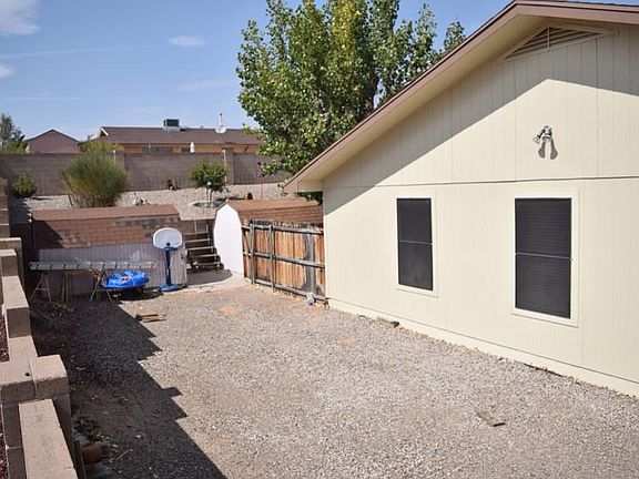 Corner lot, RV parking on the west side of the home backyard access, fully landscaped front and back. Park a boat or trailer on the east side of home. Move in ready home Refrigerated air, tile in all wet areas, faux wood blinds. This home has been well taken care of. Lots of storage space, backyard covered patio, a garden area. Some views from the front of the home of the Sandias and a covered porch in the front to enjoy the beautiful New Mexico sunsets. Two sheds 12X8, huge pantry area in the laundry room. Newer furnace, water heater,roof,new pipes,dishwasher, microwave,garage door and openers. Garage has a sink, shelves and cabinets for storage. This home will sell quickly! Call your favorite REALTOR to see it, before the not you sees it first and snags the best home on the block!
