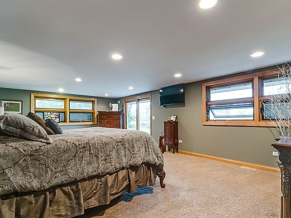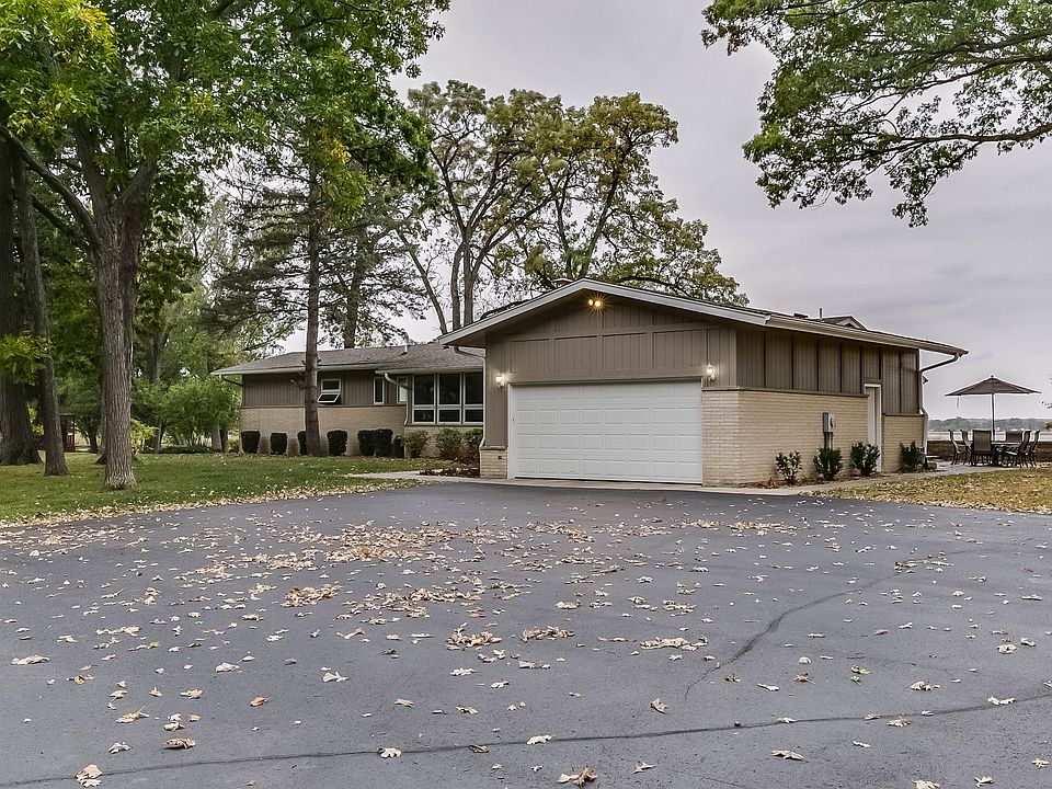 Absolutely STUNNING SUNSET VIEWS and endless SERENITY on this 3.2 ACRE estate with 4 BEDS / 3 FULL BATHS all overlooking CAMP LAKE. With over 350' of FRONTAGE, you won't be bothered. This LAKEHOUSE has great views from the moment you walk in the door. Big KITCHEN featuring SOLID WOOD CABINETS, SS appliances, CORIAN countertops and easy access to FIRST FLOOR FULL BATH & LAUNDRY. 2 car attached garage and bonus garage offer plenty of storage space. HUGE MASTER BEDROOM w/ walk-in CLOSET and FULL BATH. Natural WOOD BURNING FP, FINISHED BASEMENT w/ extra BEDROOM and OFFICE.