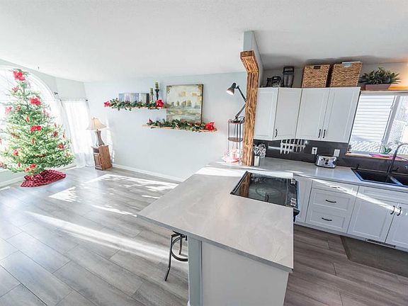 Say hello to this beautifully renovated 4-level split in the highly sought-after Mission Heights! With a recently replaced roof, this home starts strong before you even step through the door. Inside, an open-concept floor plan welcomes you, with triple-pane windows that flood the space with natural light. Newer vinyl plank flooring flows seamlessly into a bright, modern kitchen, featuring crisp white cabinetry, a striking black backsplash, stainless steel appliances, a dual-sided farmhouse sink with a cup washer, and a peninsula with seating that's just perfect for gatherings. Upstairs, the primary bedroom boasts a walk-in closet and an ensuite with a stand-up shower. Two additional bedrooms and a full bathroom with a tub/shower combo complete this level. Downstairs, enjoy a spacious family room filled with natural light and a cozy theatre room equipped with a projector. This level also hosts a fourth bedroom, a full bathroom with a stand-up shower, and a well-organized laundry room with a folding station and extra storage room. Step outside to a backyard made for entertaining: a large deck, mature fruit-bearing landscaping, and a shed for all your seasonal tools. The attached garage comfortably fits two vehicles, plus there’s an RV parking pad for extra convenience. Location is everything, and this home delivers! Close walking distance to elementary and high schools, walking trails, coffee shops, shopping, dining, and the Eastlink Centre. Opportunities like this don’t come around often so book your tour today and see why this Mission Heights beauty checks all the boxes!