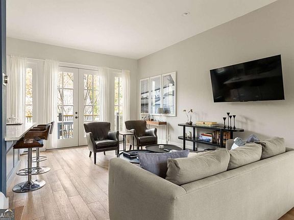 Nestled in the heart of Serenbe's Grange Hamlet, this 3-bedroom, 3.5-bathroom townhome combines modern convenience with timeless charm. The open floor plan features a dining nook and spacious living area that seamlessly extends to a back porch overlooking the bocce ball courts and treetops. Upstairs, a versatile sitting room offers the ideal setting for a home library, office, or secondary lounge. The terrace level includes a private in-law suite with its own kitchen-perfect for hosting guests or creating an additional income stream. Surrounded by protected forest views and offering immediate access to over 20 miles of soft-surfaced nature trails, this home embraces both community living and the serenity of the outdoors. Just across the street, Serenbe Farms provides weekly harvests, while shops and cafes in the heart of Grange are only a short stroll away.