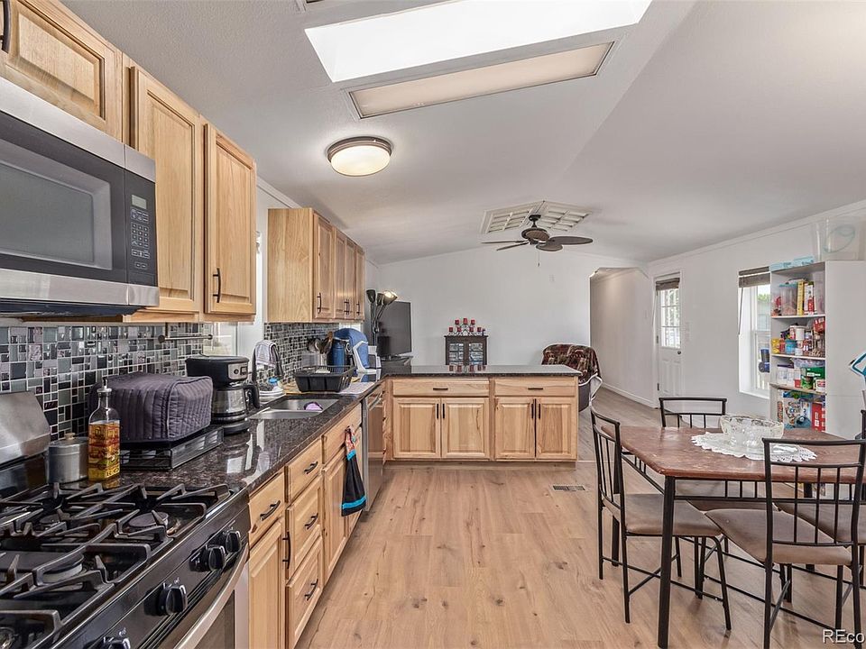 Welcome to this beautifully remodeled 3-bedroom, 2-bath home in the Eagle Crest community! You’ll love the open floor plan that highlights a stunning kitchen featuring granite countertops, upgraded glass tile backsplash, a pantry cabinet, and plenty of storage. Just off the kitchen is a designated dining area perfect for meals and gatherings. The spacious primary suite offers a private bath with a brand-new vanity, stylish mirror, tile flooring, and a fully tiled tub surround. The secondary bathroom is also fully updated with modern finishes and tilework. A separate laundry room doubles as a convenient mudroom with outdoor access. Enjoy the outdoors with a mature front tree, a beautiful grassed yard, and xeriscaped side and backyard areas for low-maintenance living. Additional highlights include off-street parking, a storage shed, a new roof, and a new water heater! As a resident of Eagle Crest, you’ll have access to top-tier amenities like a heated swimming pool, fitness center, community clubhouse with full kitchen, basketball court, BBQ area, and free WiFi in common areas. Located near Saddleback Golf Course, St. Vrain State Park, Union Reservoir, and UC Health Longs Peak Hospital, with easy access to I-25—this is Colorado living at its best!