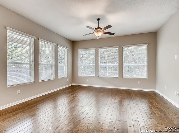 Click the Virtual Tour link to view the 3D Matterport walkthrough. Lovely single-story home with 4 bedrooms and 3 full bathrooms in a great location. Open Floor Plan with soaring ceilings and generous room sizes. Spacious living room with hardwoods and great natural light open to the kitchen. The kitchen has granite counters that carry to the island and an impressive breakfast bar. Separate office with crown molding and formal dining with a chandelier. The master has a vaulted ceiling and a full bath with dual basins, a garden tub, and a separate shower. The covered patio looks out to the private yard and greenbelt. Cleaned and disinfected on a regular basis, and ready to call home.