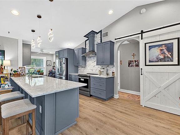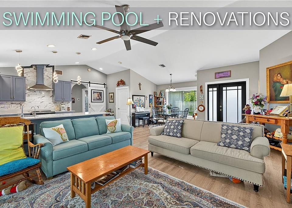 WOW ON WOODCHUCK!! With its modern renovations, sparkling pool, and excellent location, this home is sure to have you saying WOW!!! Features of this beautiful home include, New IMPACT windows & doors throughout (2024), NO HOA, Not in Flood Zone, 6ft cedar wood fenced-in-yard, 10x8 hurricane grade shed, entire home's plumbing re-piped (2023), Newer AC (2021), New flooring throughout home in (2021), newer pool (2017), New pool cage with clear view picture-window screens (2019), Roof (2016), reverse osmosis at kitchen & whole house water softener system, complete kitchen remodel including removal of a barrier/partition wall, all new kitchen cabinets, soft close hinges, new QUARTZ counter tops, new stainless steel kitchen appliances, kitchen hood that vents to outside; new washer & dryer 2025, updated fans and fixtures throughout, high ceilings, large master bedroom with gorgeous en-suite bathroom featuring frameless shower door and new vanity; large and fully renovated guest bathroom and more!! Additional features include large yard, extra wide driveway for plenty of parking and excellent location near the area's best shopping, dining, entertainment, Downtown Bonita Springs, white sand beaches and so much more!! Call for your private showing today!