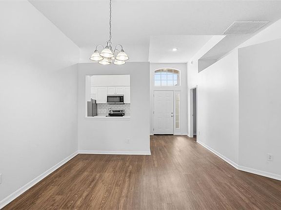 One or more photo(s) has been virtually staged. Charming 1-story home featuring 4 bedrooms and 2 bathrooms with a spacious 2-car garage. The kitchen offers white cabinets and a clean subway-tile backsplash, opening to comfortable living and dining areas. The primary suite includes a double vanity along with a separate tub and shower. Enjoy outdoor living in the screened-in back area and a private wood-fenced backyard—perfect for relaxing or entertaining.