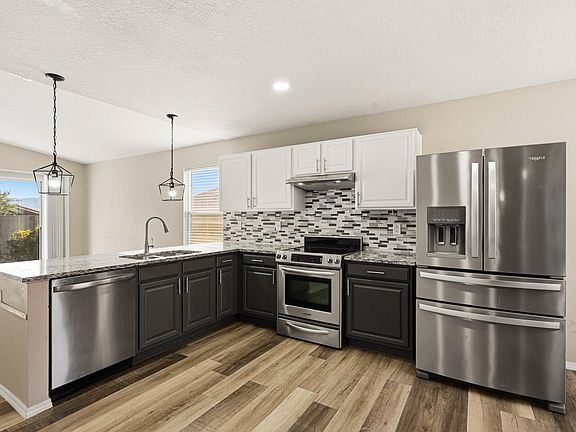 Modern kitchenOpen floorplanStainless steel appliancesGranite countertopsFully landscaped backyardCarpet in the bedroomsHigh walls for privacy