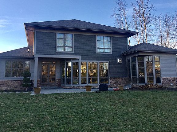 Custom built Contemporary Prarie style with extraordinary natural light. Open floor plan is an entertainers dream! One level living with master bedroom and laundry on first floor with no steps. Spacious fenced back yard. Oversized 3 car garage w cabinetry, sink and large windows. Cable and monorail stair system with 2" thick maple treads lead upstairs to the loft area and two bedrooms. The rooms each have walk in closets, large windows and full baths with granite topped cabinets, tiled floors and glass enclosed tiled showers. The master suite is a retreat with floor to ceiling windows offering another beautiful view and private entrance. The master bath is spa inspired- bright and open with a 6' air jetted tub, incredible two-headed walk in tiled shower and an elevated marble topped double vanity. The master walk in closet is large and open with another bright window. Another feature is the front room off the main area that can be used as an office or sitting area. It is again, loaded with light with it's floor to ceiling window wall bringing daylight in. Site finished Brazilian hardwood floors throughout the first floor. 12' ceilings with the front of the house opening to a 22' high wall of windows. Custom hand painted wall finishes. Linear gas fireplace. Wet bar. The kitchen again opens your view to the beauty of outdoors with three windows. Lower cabinetry with loads of storage leave a clean, contemporary feel to this space. Stainless steel appliances, extra deep stainless sink and glass cooktop continues the modern design.