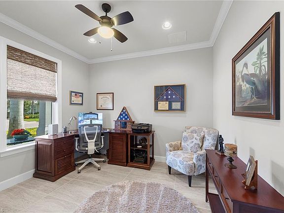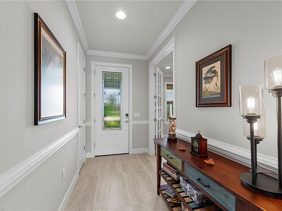 Welcome to 10613 Jackson Square Drive in the attractive Tidewater by Del Webb 55+ active adult gated community. This beautifully upgraded Martin Ray model home offers 3 Bedrooms + Den, 2 full Bathrooms and a spectacular lake view on an oversized lot. The exterior of the home painted in 2025. To fully enhance the home, it also offers a heated private pool, with new pool filter assembly in June 2025, new pool light in 2025, dual heaters, gas, and electric, and the electric heater can also work as pool Chiller! Inside you will find a chef's kitchen with large island, butler's pantry, walk-in pantry, Quartz countertops, Natural Gas for cooking, crown molding throughout, upgraded tile floors in main living areas, 2 Sun tubes for added daylight, drop zone by garage door, and more! The Master suite offers a quiet retreat, a custom accent wall, ensuite bath with large shower and custom finished walk-in closet. The beautiful interior flows seamlessly to the outside. where you will find an extended covered lanai, with 2 motorized roll-down UV sun shades to filter the sunlight, and additional motorized roll-down hurricane shutters to allow outdoor furniture storage during storms. Beyond the covered area, the lanai offers space to relax by the heated pool, with a view of the lake and fountain. This home offers the perfect amount of space for two, yet provides an 2 extra bedrooms for company! The award-winning amenity center offers bocce ball, pickle ball, tennis a resort-style pool and more! Tidewater by Del Webb is Estero's premier Active 55+ community, offering the perfect location in Estero, and NO CDD! Close to RSW Airport, Miromar Outlets, Hertz Arena, I-75... and a short drive to the sandy beaches of SWFL. Welcome home!