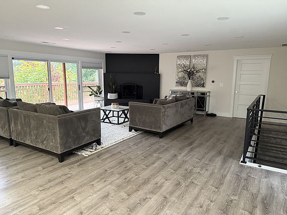 This spacious home features 4 bedrooms and 3 bathrooms, with a completely remodeled main floor offering fresh, modern finishes throughout. Inside, you'll find two staircases and impressive 16' sliding glass doors on both levels that fill the home with natural light and offer gorgeous wooded views.
