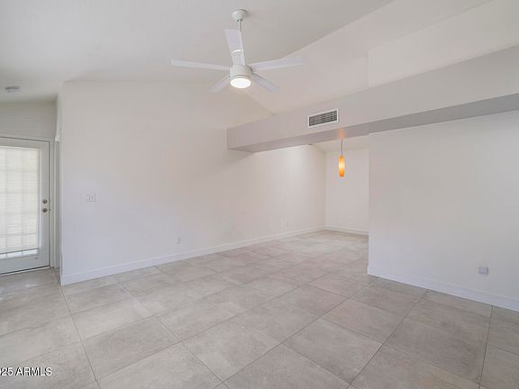 New look, fresh feel—no waiting required! This freshly reimagined 2 bed, 2 bath home is packed with brand-new upgrades and built for easy, lock-and-leave living. Soaring vaulted ceilings and skylights fill the space with natural light, while NEW large-format porcelain tile—sleek and more durable than ceramic—flows throughout. The professionally designed kitchen stuns with NEW frameless cabinetry, crisp quartz countertops, and clean, modern finishes. Fresh paint inside and out gives everything a polished feel. Outside, enjoy a low-maintenance desert backyard with panoramic South Mountain views and unforgettable sunsets. A 2-car garage adds extra convenience. Turnkey, stylish, and move-in ready—this one checks all the boxes.