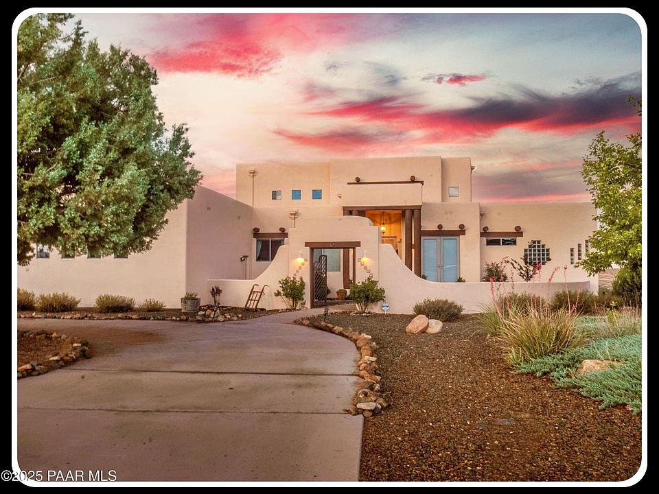 WOW! WOW! WOW! Santa Fe style home on over an Acre in Prescott Country Club! NO HOA! Stunning, un-blockable Views & Gorgeous Sunsets from large picture windows & decks! Sooo many features I don't know where to begin.... This wonderful home has something for everyone. Main floor living provides Huge kitchen w/views & breakfast area w/fireplace, Grand room w/views & fireplace, Den area w/doors to courtyard, Dining area, Owners suite w/separate walk in shower & soaking tub, Guest room w/bath, + an oversized laundry room. Downstairs you will find a walkout living area w/views, a full bath, media room, plus 3 other fantastic rooms. Upstairs is a super sized bedroom w/views & another full bath (could be a great in-law area). Phew! Home as lots of storage too, plus a 3 car garage... AND MORE!!! Tour today.