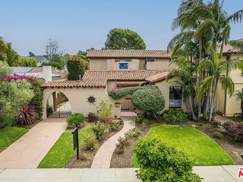 This charming two-Story Spanish home boasts four bedrooms and two baths on a picturesque street perfectly located near Cheviot Hills and Rancho Park Golf Course. With curb appeal galore, enter through a winding flower lined pathway into a welcoming gated courtyard. The delightful living room features many original architectural details including notched beamed ceilings, stained glass picture window, hardwood floors and cozy fireplace. The adjacent formal dining room links to a sunny spacious kitchen. Downstairs are two bedrooms, one with enchanting corner fireplace and one bathroom. Upstairs are two bedrooms and one bathroom including the large primary with a French doored balcony overlooking the lush and private yard below. Enjoy the expansive and inviting backyard with grassy lawn, several patios and a pergola for outdoor enjoyment and entertaining, fruit trees and blooming gardens. Detached two car garage. Ideal location near shopping, dining and entertainment, Westfield Century City, UCLA and award-winning Overland Avenue Elementary School. Trust sale.
