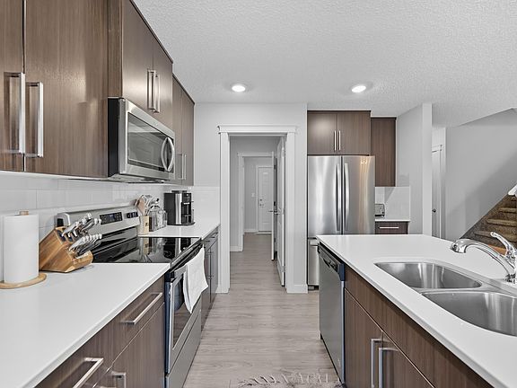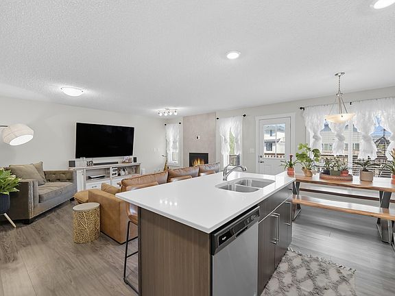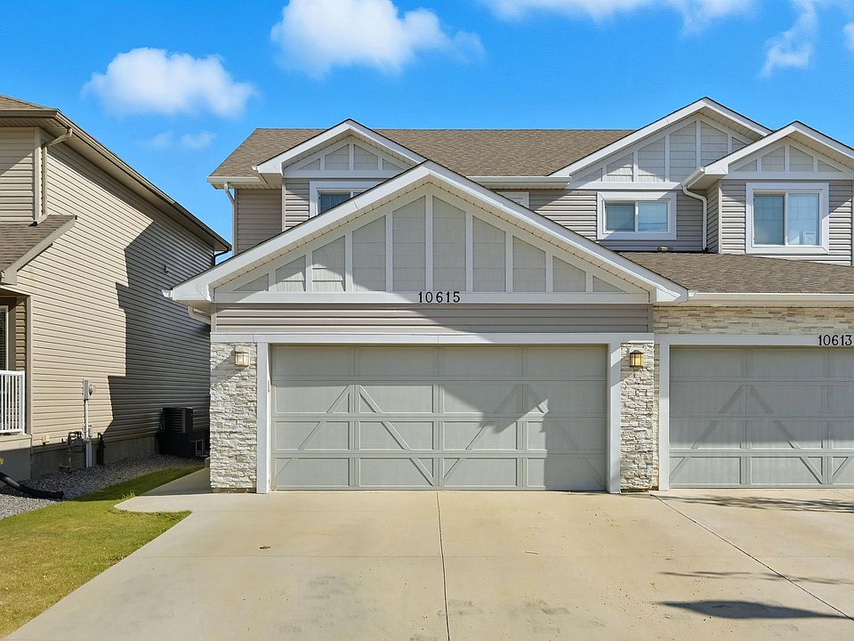 Welcome to this stylish half duplex in the heart of Morinville! The open-concept main floor is designed for modern living with durable vinyl plank flooring, quartz countertops, a spacious eat-up kitchen island, and a convenient walk-through pantry. A 2-piece bath completes the level. Upstairs you'll find 3 spacious bedrooms including a primary retreat with a 4-piece ensuite, an additional 4-piece bath, and the convenience of upper-floor laundry. The basement is ready for your personal touch with 9' ceilings offering endless possibilities. Enjoy a fully landscaped backyard with deck—perfect for summer BBQs—and a double attached garage for added convenience. Morinville offers small-town charm with a vibrant community spirit, top-rated schools, and a fantastic recreation centre. All this just minutes from St. Albert and Edmonton, giving you the best of both worlds: family-friendly living with quick city access.