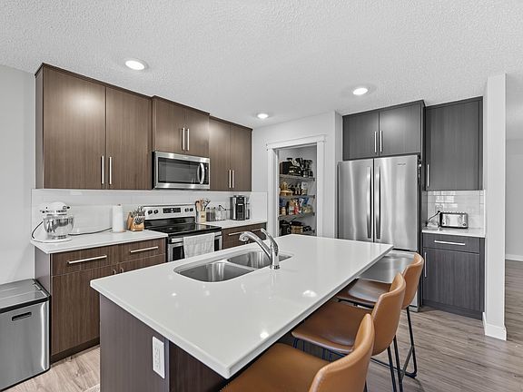 Durable vinyl plank flooringQuartz countertopsSpacious eat-up kitchen islandWalk-through pantryUpper-floor laundryFully landscaped backyardDouble attached garage