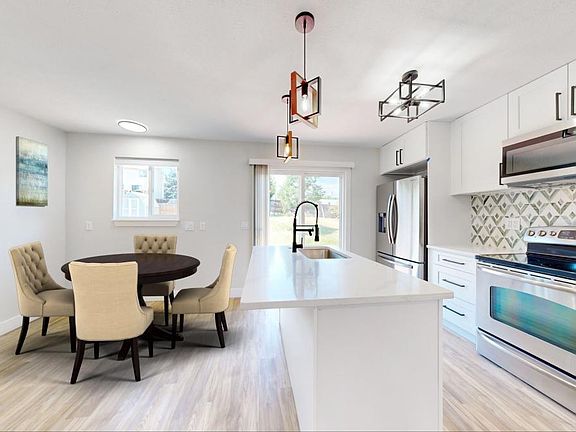This totally renovated 2 story home is ideally located on a quiet corner on a cul-de-sac and provides privacy and a sunny interior. Seller will have all the windows replaced with new vinyl windows! A generous entry foyer opens to the sunny living room with a fireplace features large oversized windows overlooking the front yard and open to kitchen. The dining room opens to kitchen and is highlighted by a large island, white shaker style cabinets, pantry and quartz counters. The kitchen opens to the breakfast room and large deck in the backyard perfect for relaxing and entertaining. The back hall leads to the guest bath and attached 2 car garage. Upstairs the primary bedroom suite includes double closets and private bath. There are two additional secondary bedrooms served by a full bath. The finished basement includes a large rec room, an en-suite bedroom with a new full bath and laundry. Black plumbing fixtures and accents provide tasteful contemporary contrasting accents that highlight the features of this home. Convenient location blocks to Margaret Carpenter Park and Rec Center including trails, pond, playground, basketball courts and Pelican Ponds open space. Seller will have all the windows replaced with new vinyl windows. Contact listing broker for details.
