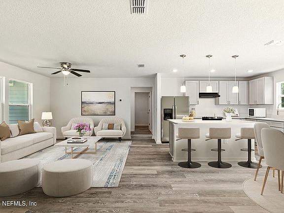 Don't miss this incredible opportunity to own a brand new construction home tailored for modern living! 3 BR, 2 BA home is perfectly situated on an oversized 1 acre lot. Designed with both style and functionality in mind, a split floor plan that offers privacy and space. The open-concept layout welcomes you with stylish finishes throughout. You'll love the seamless flow of the main living area, luxury vinyl plank flooring, ideal for both everyday living and entertaining. The heart of the home- the kitchen boasts of sleek quartz countertops, beautiful shaker cabinets, matching appliances and a spacious island overlooking the living and dining areas. Private primary suite, thoughtfully placed on one side of the house. Mudroom, separate laundry room, 2-Car garage, architectural shingle roof, new well / septic, and No HOA. Lot is mostly cleared with endless possibilities awaiting your creativity.