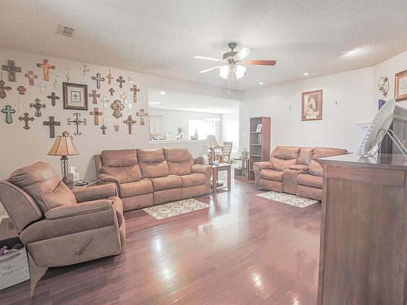 Fabulous 3/2/2 home located in Stonebrook South. Beautiful hardwood floors throughout the living area. Isolated master with plenty of space for furniture. Vaulted ceiling in the front bedroom. Blinds will stay with the home, as well as the storage building in the back yard. The storage is equipped with electricity, indoor and outdoor lighting. Alarm and 9 camera surveillance system with also stay with the home. New hot water heater in 2018 and new HVAC in 2019. Priced to sell so stop by and see it today.