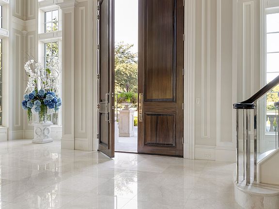 Welcome to 10617 Bridge Hollow — a masterwork of architecture, integrity + serenity. Tucked in the exclusive Creeks of Preston Hollow, this residence rests on a private lot where 2 creeks wind through lush, tree-lined banks. It stands as a rare union of natural beauty + enduring craftsmanship. This 2018 custom home spans 1.44 AC + is framed entirely in steel — a $500K investment ensuring lifelong stability. 130+ piers run deep into Austin chalk, forming a foundation that’s a feat of engineering. The timeless design features a Syrian limestone façade + slate roof built for a century of endurance. Hand-carved fireplaces, steel gutters + integrated drainage reveal an obsession w permanence + precision. Step through the 20-ft African mahogany door + the home unfolds in a play of light + volume. Ceilings soar to 25 ft in the entry + 17 in the living room, framed by windows overlooking nature. Each space exudes quiet grandeur — oak + limestone floors, bespoke chandeliers + refined proportions. The kitchen is a sculptural statement in quartzite, onyx + brass, backed by a scullery for effortless entertaining. The Control4 system unites lighting, sound + security. The 1st-flr owner’s suite is a private sanctuary w heated marble floors, automated shades, massive closets + a massage-exercise room open to a serene backyard. A library w built-ins + a custom fish tank adds sophistication + warmth. A spacious guest suite rounds out the main level. Upstairs, 4 guest suites w private baths overlook treetops + water views, while a glass staircase from Australia arcs through the home like sculpture. A game room offers flexible space for entertaining + a basement wine cellar provides abundant storage for collectors. A resort-style backyard, inspired by Palm Springs, features a tranquil pool, turfed lawn + elegant lighting — a landscape of privacy + peace. This residence is a testament to enduring design — built for those who value substance, beauty + permanence in equal measure.