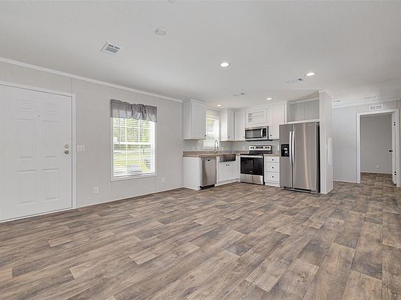 Welcome to your private sanctuary in Hudson, Florida! Seller states this newly built 3-bedroom, 2-bathroom manufactured home is nestled on 1.35 acres, surrounded by beautiful woods and mature trees, offering the perfect blend of tranquility and modern living. Inside you’ll find an inviting open floor plan, where the living room and kitchen seamlessly connect, creating a spacious and airy feel. The kitchen is equipped with brand-new stainless steel appliances to make meal prep a breeze. The home features generously sized bedrooms, each with its own built-in closet, providing plenty of storage and organization. The primary suite is a true retreat, featuring a walk-in closet and a spa-like ensuite bathroom with built-in shower benches. Plenty of windows throughout the home allow for natural light to fill the space, creating a bright and welcoming atmosphere. Laminate flooring throughout adds a stylish touch while ensuring easy maintenance. Outside, enjoy your own large pool patio featuring a gunite pool, perfect for cooling off on hot Florida days, hosting backyard gatherings, and entertaining guests. There is an additional commercial/residential zoned building on the property. Bring your business or expand your living space. Experience peaceful country living while still being close to all the conveniences Hudson has to offer. Don’t miss out – schedule your private showing today!