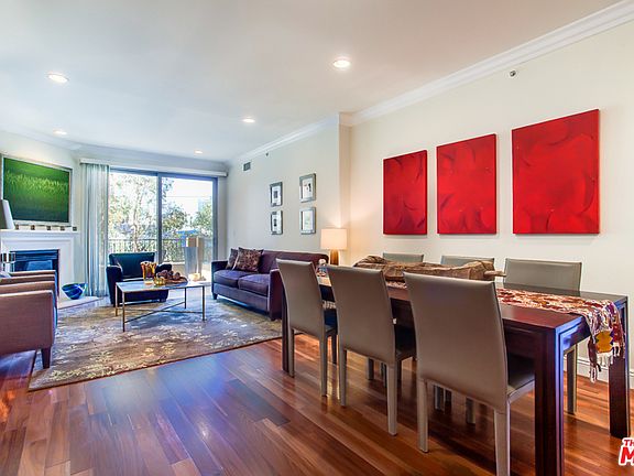 Elegant light filled single-level 3 bedroom in prime Westwood, built 2006. Tiled foyer leads to open living/dining area with gas fireplace, large balcony for gracious entertaining. Open gourmet kitchen with custom cabinetry, stainless appliances, granite counters, built-in micro, gas range, ample work space and storage. Powder room, laundry off entry foyer. High ceilings, crown moldings, lovely mix of tile, wood & carpet throughout. Master bedroom with fireplace, walk-in closet, en-suite bath with double sinks, spa tub and separate shower. Two additional bedrooms share full bath in hallway. Light rear unit faces north & east, with open city views. Quiet, private & only 1 shared wall. Elegant 2 story lobby, Cat 5 wiring, alarm system, private storage, rare 3 parking spaces. Fairburn School, minutes to Westwood Village, UCLA, Beverly Hills & Century City. HOA incl. water, hot water, bldg maint, EQ ins. Unit will not be delivered vacant. Tenant pays at $4350.