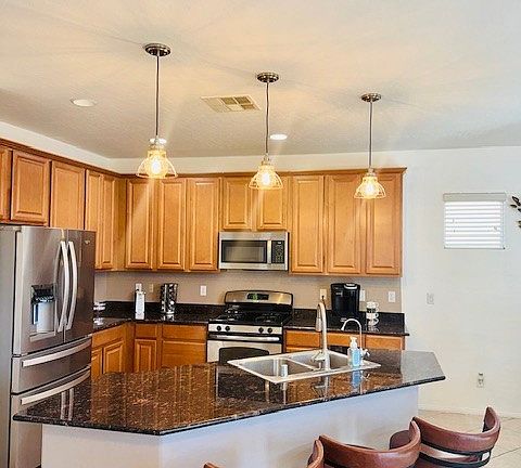 Come Enjoy the Wonderful Residential areas that Las Vegas has to offer. Walkable communities with Parks, Promenades and Trails right outside your door. This 4 bedroom 3 bath 2 Story home has an Open Floor Plan and Spacious Kitchen area with an Island. A covered patio area to enjoy the Backyard with your Friends and Family. Walking distance to Bozarth Elementary and Huckleberry Park with Splash Pad. All Appliances included (Refrigerator & Washer/Dryer). Some furnishings may stay as well. Come see this North Las Vegas Beauty and Drive right passed the Strip.