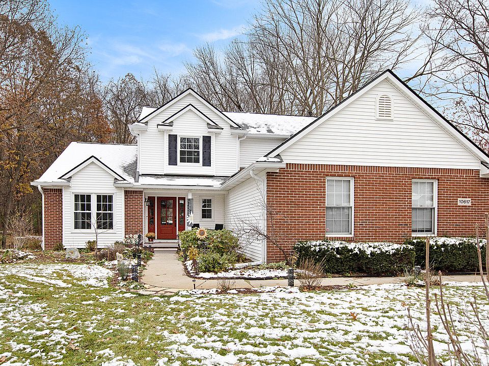 Welcome to Cobblestone Creek Estates! This beautifully updated 5-bedroom, 3.5-bath home sits on a landscaped half-acre with a heated in-ground pool, fire pit, paver patio, and new composite deck. Inside, nearly everything has been refreshed, including a fully updated kitchen with granite counters, new cabinet doors, hardware, sink, and appliances. New hardwood and engineered floors flow throughout, complemented by updated lighting and fresh paint. The first-floor primary suite features a stunning remodeled bath, and the finished walkout lower level includes a full bath, rec room, fitness area, and optional 5th bedroom or office. Major updates include a new 6'' gutter system with leaf guards, new entry door and doorwall (2025), driveway (2023), and roof, windows, HVAC, and water heater (2017). Move-in ready and beautifully maintained—this home truly has it all!