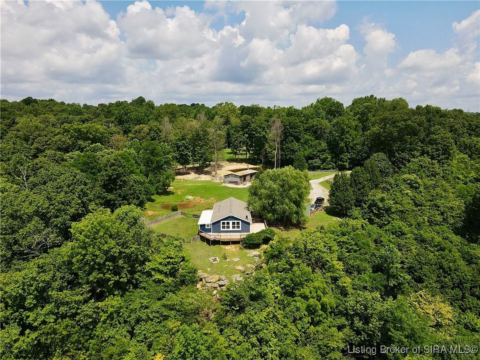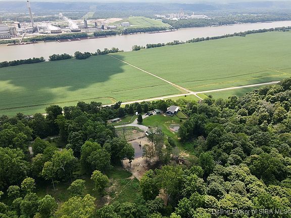 This rare, hard to find property offers total seclusion and privacy from the world. Located at the end of the road, sits this recently updated log home. Built in 2000 with 1,516 sq ft of space, it comprises 2 bedrooms, 2 full baths, an office, an eat-in dining area, and an open floor plan kitchen/ living room with a fireplace. Recent updates include a new roof, windows, flooring, gutters, painting, and bathroom remodel. The outdoor space has a spacious detached garage, fenced areas for goats, horses, dogs, and chickens, and barns for all these types of animals. The showstopper view is amazing. Imagine waking up every morning to a sunrise over the Ohio River as the world comes alive. Bald eagles are commonly sighted and sometimes roost along the wood line of the home. Deer cross the property regularly as they move between the conservancy blocks of timber, making this a perfect place to spot a mature buck during the rut. With so many possibilities, such as a cabin getaway, Airbnb, or permanent residence, this one is sure to please.