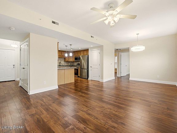 Nestled in the heart of Norton Commons' vibrant South Village and conveniently located just moments from the new Publix, Paddocks Shopping Center, I-71, and Gene Snyder Freeway, this stunning second floor unit offers buyers a completely move-in ready space in an unbeatable location. More so, the unit is immediately ready for the next owner's personal touches with the biggest ticket items already taken care of: new light fixtures, new stainless steel appliances, new paint throughout the unit, new flooring installed throughout the unit, new HVAC system (2021), new washer and dryer (2021), and new water heater (2021). Featuring engineered hardwood floors, fresh paint, and bright living spaces, the open floor plan of the condo offers a welcoming gathering space with spacious living room, dining area, and eat-in kitchen. With new stainless steel appliances, new pendant lights, granite countertops, pantry, and eat-in island, the kitchen is the perfect place to entertain. Off the living room, homeowners will enjoy use of the gracious primary bedroom suite, featuring a large bedroom with tray ceiling, en-suite bath with dual vanities, and sizable walk-in closet. The split-floor plan of the unit offers two additional bedrooms with newly added engineered hardwood flooring, shared full bath, and convenient in-unit laundry. Featuring a reserved covered parking space, secure building with in-unit call system, easy elevator access, and newly added storage unit in the basement, this condo is guaranteed to accommodate a wide range of buyer needs. With all the major expenses already taken care of by the current owner, homeowners can simply begin to enjoy taking advantage of the neighborhood's schools, plazas, parks, pools, and recreational amenities. When not exploring the local restaurants just outside your door or enjoying a concert at the lakeside amphitheater, this turn-key unit will be the perfect spot to relax and unwind. Schedule your private showing today!