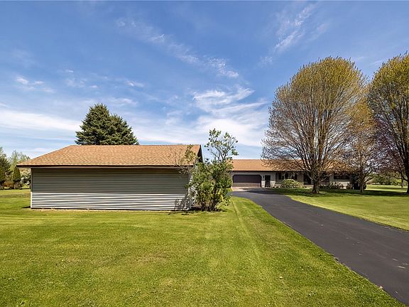 Immaculate custom one owner ranch on 4 acres. Beautiful kitchen with Hickory cabinets with view of several acre backyard. 3rd bedroom in the lower level. Whole house generator, invisible fence around 1 acre, furnace and a/c 2019, roof replaced on house and pole barn 2020. Washer & dryer included. First floor Laundry room has half bath. Large 26'x26' attached garage with a 14'x13' storage area plus a 7'x8' covered patio off the garage. 2x6 construction, water well approximately 50' deep. Interior painted 2021. Pole Barn for additional storage.