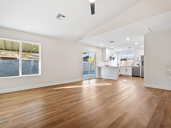 Step into this beautifully remodeled 4-bedroom, 3-bathroom home, where contemporary design meets everyday comfort. The open-concept layout is bathed in natural light, highlighting the luxury vinyl plank flooring and vaulted ceilings. The chef's kitchen boasts stainless steel appliances, quartz countertops, and a spacious island, perfect for entertaining.
