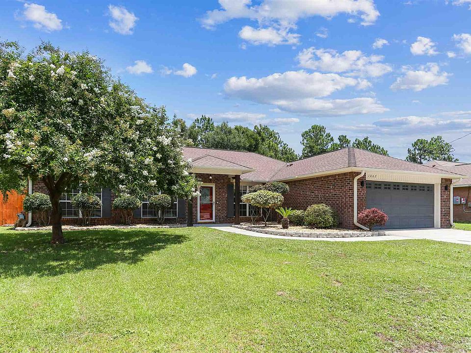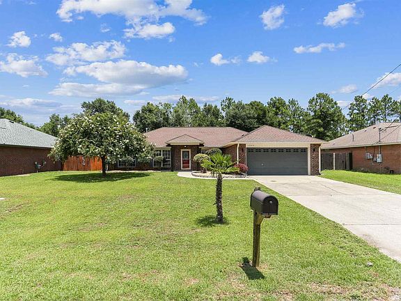 This spacious 4-bedroom, 2-bathroom home is located in a highly desirable area on the west side of Pensacola, just minutes from the beaches, NAS Military Base, state parks, shopping, schools, and convenient boat launches at Perdido Bay and Lillian. With 2,100 square feet of living space on a .26-acre lot, this home features an open floor plan with soaring cathedral ceilings and a split-bedroom layout for added privacy. The formal dining room can easily be converted into a home office, while the eat-in kitchen offers a breakfast nook, breakfast bar, granite countertops, and white cabinetry. Flooring includes wood laminate throughout the main living areas, tile in the kitchen, laundry, and bathrooms, and brand-new luxury vinyl plank flooring in all bedrooms (2025), a $10,000 upgrade. Laundry Room inside Washer and Dryer Convey. Additional Refrigerator in Garage Conveys. The spacious master suite boasts high ceilings, two walk-in closets, a garden tub, separate shower, and a double vanity with elevated granite counters. Natural light pours in through sky tube lighting in both the kitchen and master bath. Enjoy outdoor living on the large covered patio overlooking a private, wooded backyard with no rear neighbors, a privacy fence and shed. Additional features include 2x6 exterior walls, gutters, ¾-inch plywood flooring in the attic for extra storage, and no HOA. Major updates include a 3.5-ton TRANE XR 16 SEER high-efficiency HVAC system installed in 2023 ($11,100), a WiFi-enabled garage door opener, and a freshly pressure-washed exterior (2025). This home offers comfort, convenience, and value in a fantastic location!
