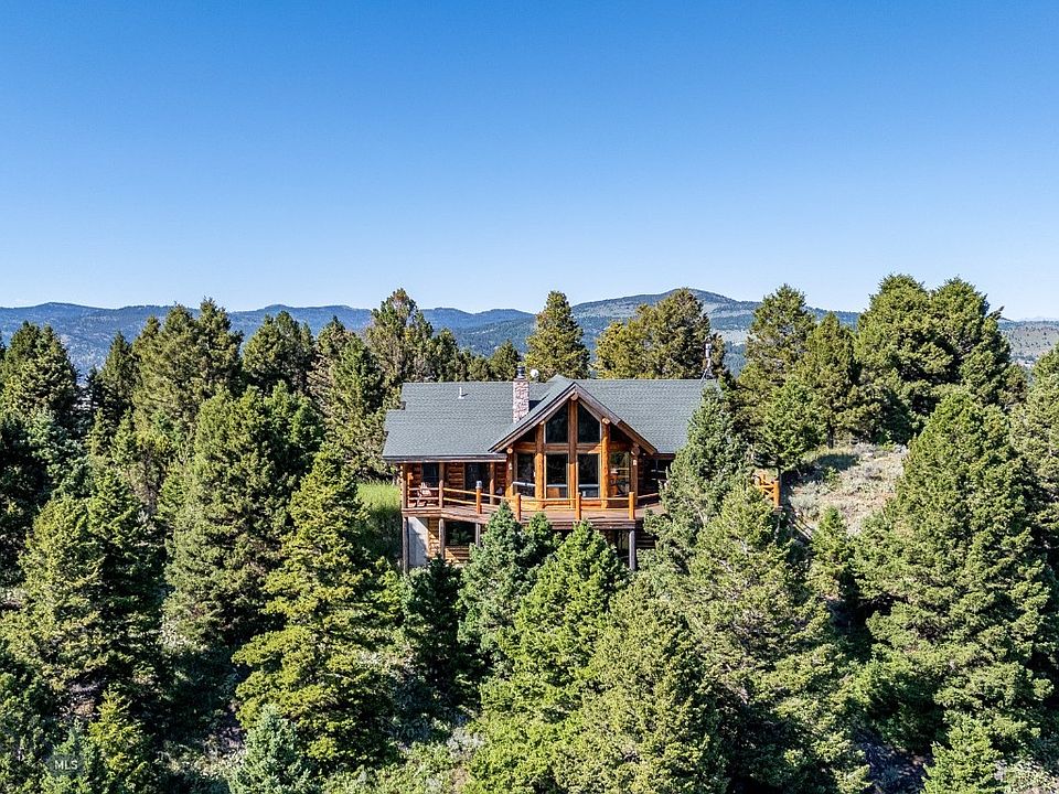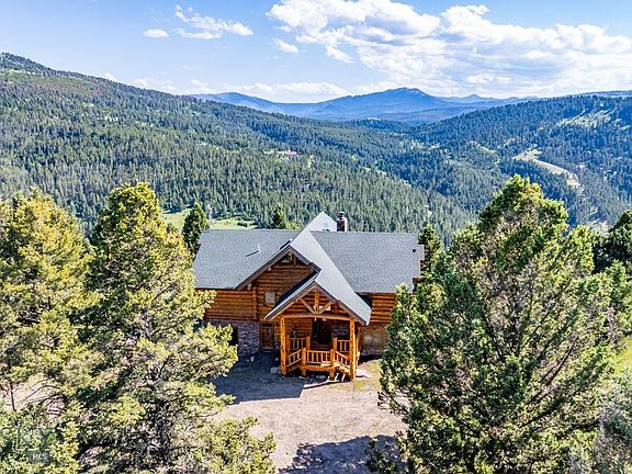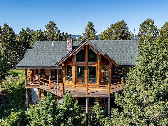 Escape to this beautiful log home on Johnny Martinez Trail, where rustic charm meets modern comfort in Bozeman's scenic foothills. Surrounded by towering pines and offering breathtaking mountain views in every direction, this property is pure Montana magic. The heart of the house is the dramatic great room with soaring timber ceilings, a stunning stone fireplace, and walls of windows that showcase those incredible views, while rich hardwood floors and warm log walls create a cozy yet sophisticated atmosphere throughout. The gourmet kitchen features beautiful wood cabinetry, granite counters, and stainless appliances – perfect for everything from morning coffee to dinner parties. The master bedroom is conveniently located on the main level, offering a peaceful retreat with log walls, forest views, and gorgeous vaulted ceilings, while upstairs you'll find a charming loft space accessible via a rustic staircase with natural wood railings that adds authentic mountain character. The basement level provides excellent additional living space with two bedrooms and a full bath, plus an unfinished area that offers endless possibilities for customization – whether you envision a home gym, media room, or whatever suits your lifestyle. The expansive deck is where this place really shines, with multiple outdoor spaces that take full advantage of the spectacular mountain views – perfect for morning coffee, evening drinks, or just soaking in Montana's natural beauty. Adding to the outdoor appeal is a private stocked pond on the property, perfect for casting a line right from your backyard or simply enjoying the peaceful water feature. Nestled on a private, wooded lot that feels like your own personal forest, you'll have complete privacy while still being convenient to Bozeman and Livingston, creating the perfect balance of mountain retreat and accessibility. This isn't just a house – it's your gateway to the Montana lifestyle, where every day feels like a vacation and every view takes your breath away.