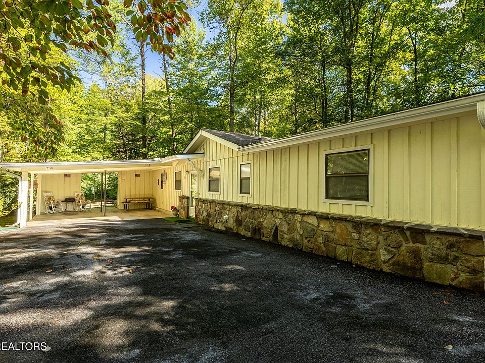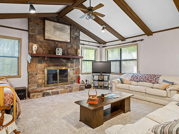 Experience Smoky Mountain living in Buena Vista Estates! Conveniently located near Pigeon Forge and Gatlinburg, this property is ideal as a primary home, vacation escape, or short-term rental. Enjoy easy access to dining, shopping, and attractions in Gatlinburg, Pigeon Forge, and Sevierville, as well as hiking trails in the nearby Great Smoky Mountains National Park. This 3 bed/2 bath ranch-style home features an inviting open floor plan, with the living room boasting a vaulted ceiling with faux beams and a gas stone-accented fireplace. The split-bedroom layout provides comfort and privacy for guests, while the master bath features a large walk-in shower. Take in nature from the enclosed porch, relax outside by a fire pit, or fish in the catch-and-release community lake. Enjoy the charm of Sevierville living with a peaceful setting and convenient access to town. This property is sold AS-IS. Buyer to verify all information, including square footage.