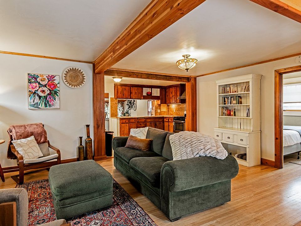 The Mallard house is located in the heart of the westside. 10 minute walk to downtown Bend through Drake Park. 2 blocks from Galveston ave and 4 blocks from Newport Ave. This charming home has 2 things in mind; inspiration and comfort. Highly figured maple trim, Venetian plaster, granite counter tops, wool carpet, and a walk in shower. There is a fenced yard for your pet and a gas fireplace. Fully furnished Owner pays all utilites except cable