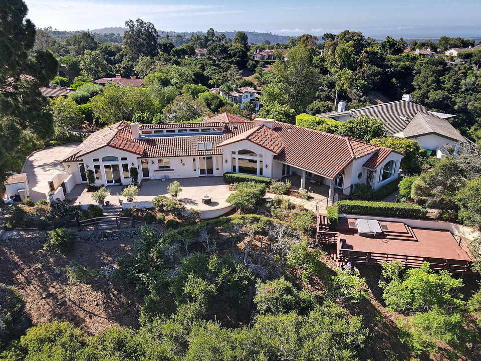 Ocean, Island and mountain views in Park Highlands! The special features of this property include hardwood floors, open beamed ceilings, numerous skylights, and spectacular views. The ocean views can be enjoyed from the primary bedroom, garden and gazebo. The property is of Mediterranean architecture, and single level construction. The many upgrades include a fully remodeled kitchen with an abundance of storage space and a central island with a prep sink. In addition to a Viking stove, there is an additional built-in oven and two microwave ovens. All of the main rooms open to individual patios. The outdoor patios, decks and gazebo will accommodate guests for any occasion. The oversized two car garage has a separate area with storage cabinets and counter space dedicated to a (more) workshop area. The 1.2 acre parcel has been fully developed to include raised beds for planting vegetables and a fruit orchard of 28 producing trees that include peach, plum, apricot, persimmon, fig and various citrus trees. There is also a detached deck with a sitting area around an inground spa positioned for taking in the mountain views. 1062 Via Los Padres is located just minutes from Santa Barbara and is located in the sought after Mountain View Elementary School attendance area.